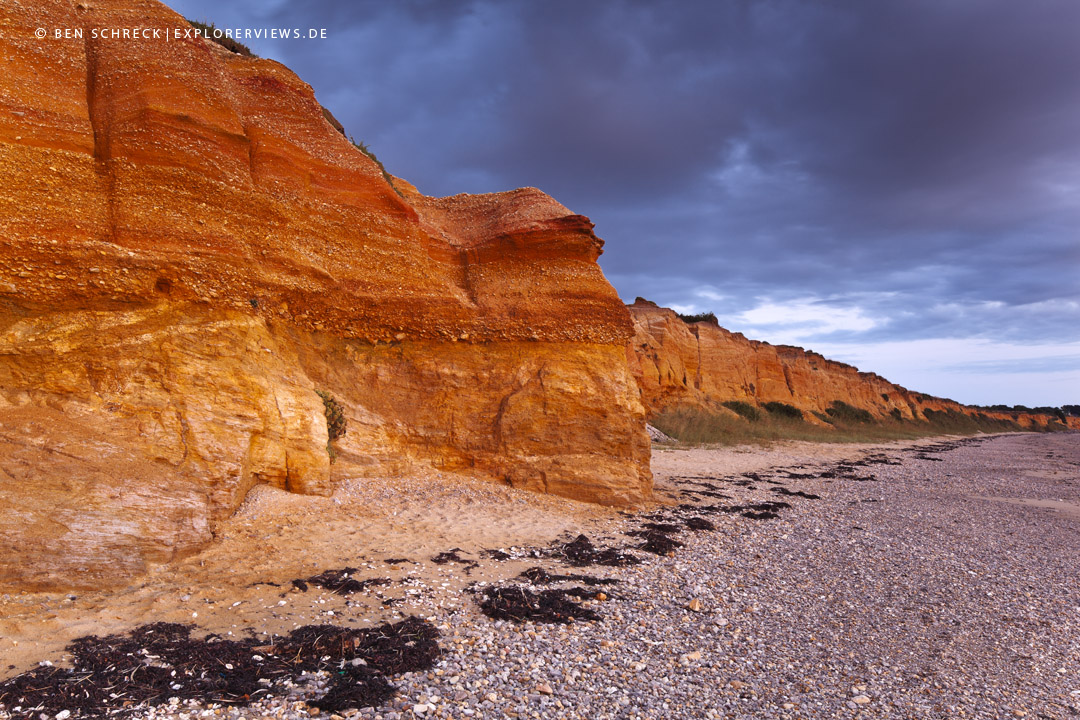 Eingerahmt von einer gut zwei Kilometer langen Bucht erhebt sich aus dem flachen Gelände eine mittelhohe Klippe über das Meer. Diese Klippe besteht aus einer porösen Struktur mit einer sonderbaren Farbmischung aus Orange, Gelb bis Ocker.