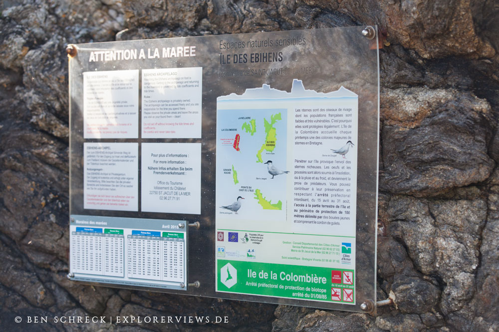Außerdem wird darauf hingewiesen, dass eine der Nachbarsinseln, die Ilot de la Colombiere, von 15. April bis Ende August nicht zu betreten ist, weil dort verschiedene Seeschwalben zu dieser Zeit nisten.