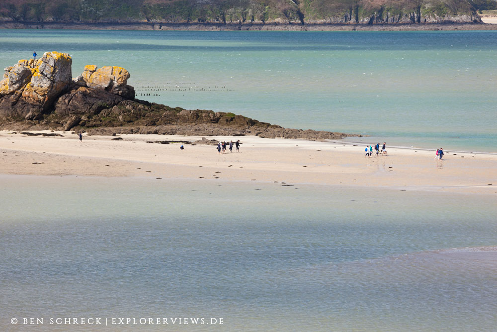 Erst bei einem Gezeitenkoeffizient größer 50 wird das Archipel zu Fuß erreichbar. Das heißt es braucht wenigsten eine mittlere Gezeitenphase, damit das Wasser bei Ebbe soweit abläuft, damit die Sandbänke frei liegen.