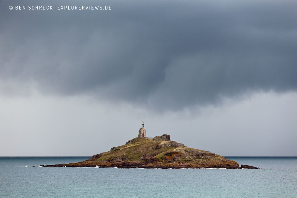 Mir ist es einmal passiert, dass mein vermeintlich sicherer Rückweg zum Land auf halbem Wege durch das steigende Wasser überspühlt wurde. Ich selbst stand weiter draußen auf einem Fels, machte noch ein paar Fotos und wollte dann schnell über einen höher gelegenen Felsrücken zum Strand zurück. Nur war der plötzlich irgendwie viel kleiner und schon mit Wasser umspühlt.